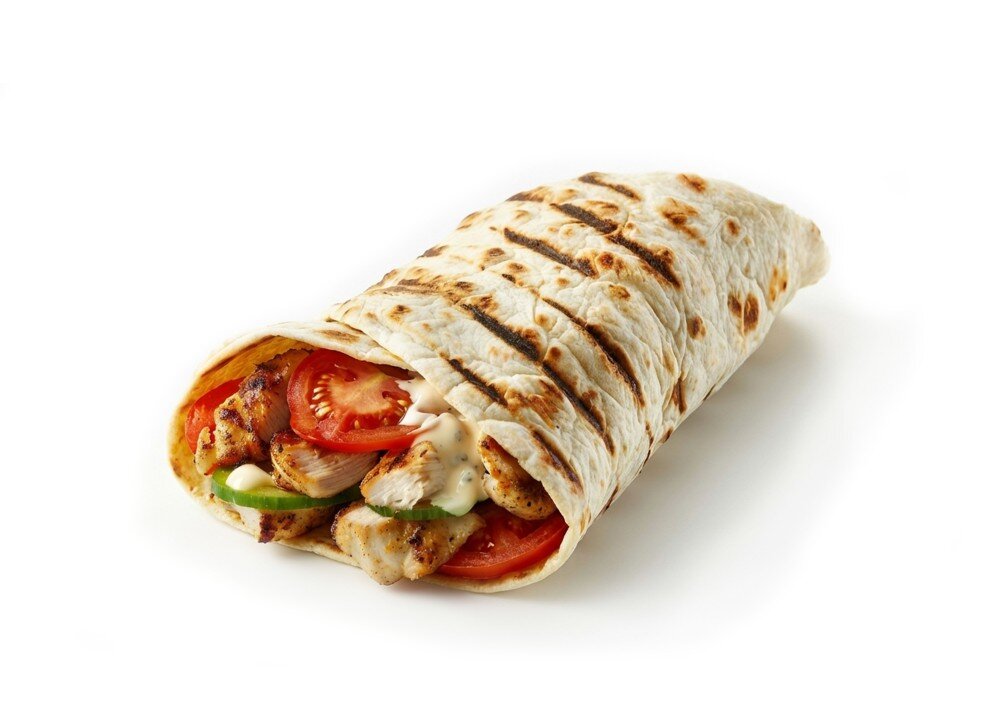 Классический ролл с тонкой пшеничной тортильей, соусом ранч, сочным цыпленком, свежим томатом, хрустящим маринованным огурцом и тягучим сыром моцарелла.