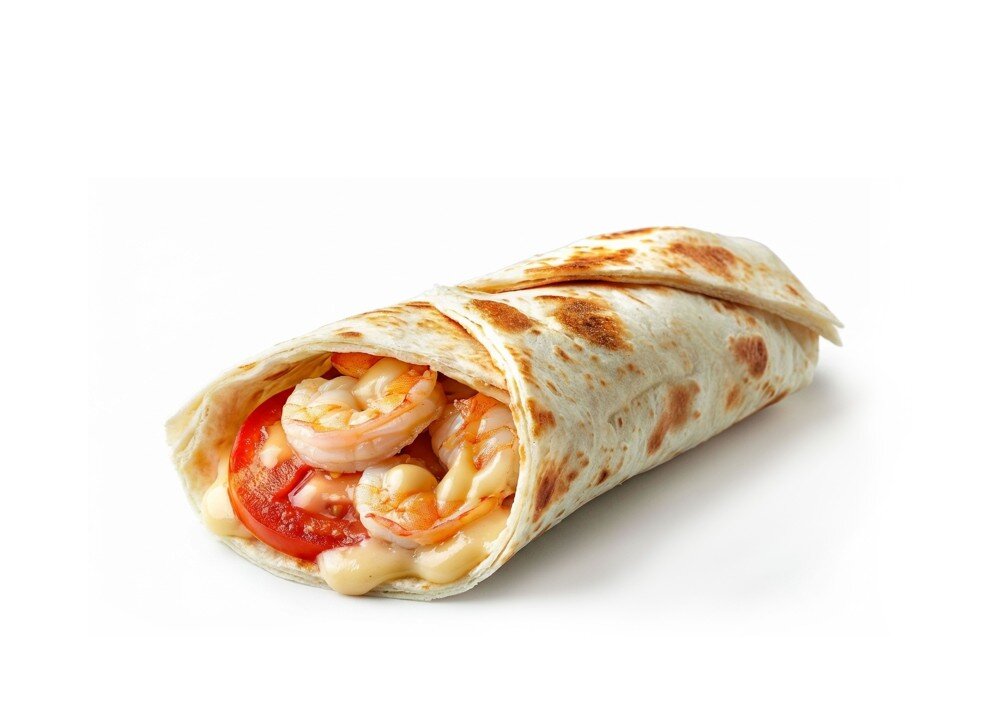 Классический ролл в тонкой пшеничной тортилье. В начинке кисло-сладкий соус, креветки, салат айсберг и сыр моцарелла.